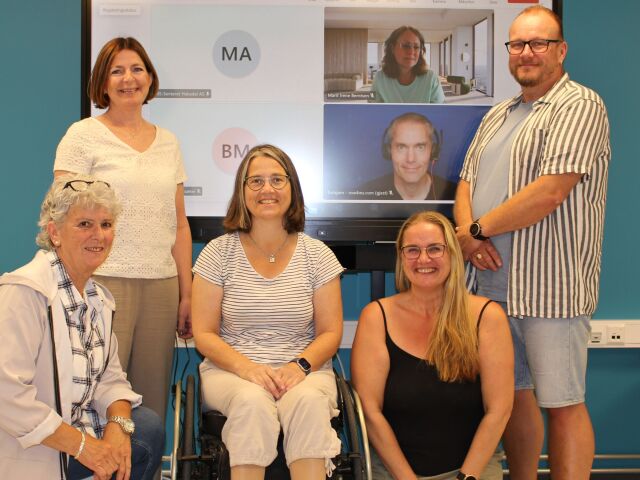 Foran fra venstre: Ing-Wenche Andreassen, Laila Kandal, Gro Sundby, Bianca Mellingsæter og Bent Harald Bentsen. Bak på skjerm: Marit Irene Berntsen og Torbjørn Laundal. Foto: Tonje Dynna, MSSH